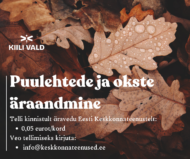 Hea kinnistuomanik! Puulehti ja oksi saab ära anda kuni 30. novembrini! 🌳Vedu korraldab Eesti Keskkonnateenused AS. Vedu maksab vaid 0,05 € korra eest – kiire, lihtne ja soodne viis...