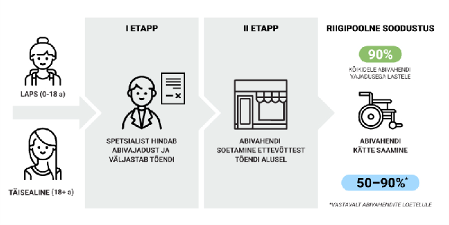 Lastele kuni 18. eluaastani kehtib 90-protsendiline soodustus abivahendi piirhinnast. Täiskasvanud saavad samuti 90-protsendise soodustuse enamikule abivahenditest, kuid põiepidamatuse toodete puhul katab riik poole kulust.
