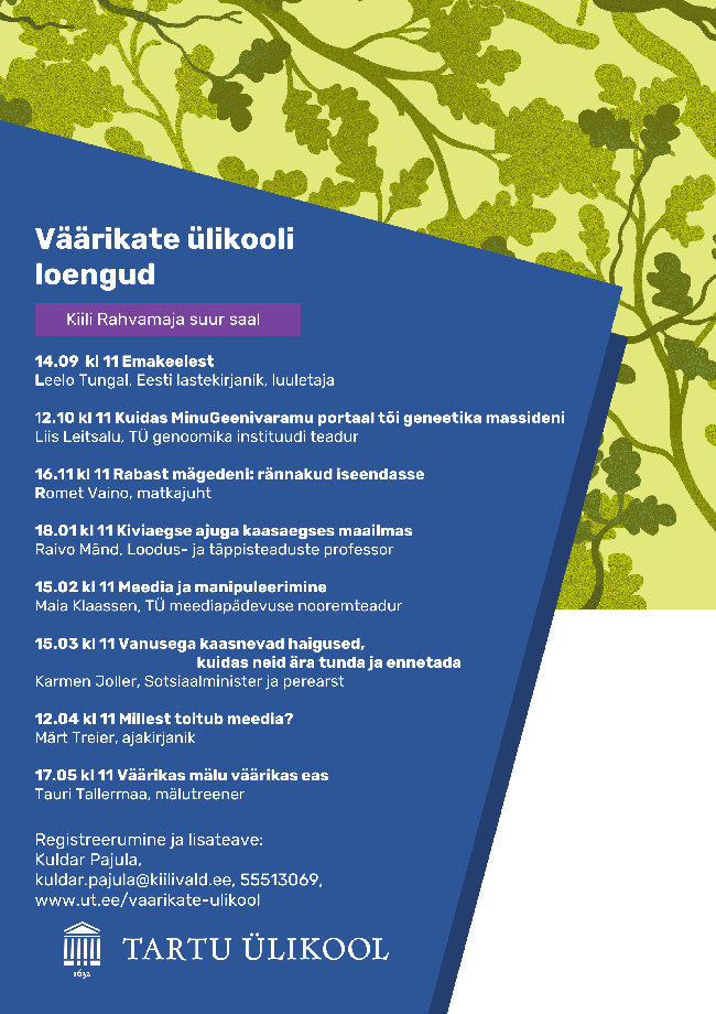 Sügisel avab Kiilis uksed Tartu Ülikooli väärikate ülikool, kuhu on õppima oodatud kõik 50+ huvilised. Loengud ja seminarid käsitlevad päevakajalisi ning silmaringi avardavaid teemasid. Kõik väärikate ülikooli loengud on osalejatele tasuta. Õppijad, kes on osalenud vähemalt 75-l protsendil loengutel, saavad Tartu Ülikooli täiendusõppe tõendi. Loengud toimuvad Kiili rahvamaja suures saalis. Loengukava ja registreerimisinfo avaldatakse õppeaasta alguses.
