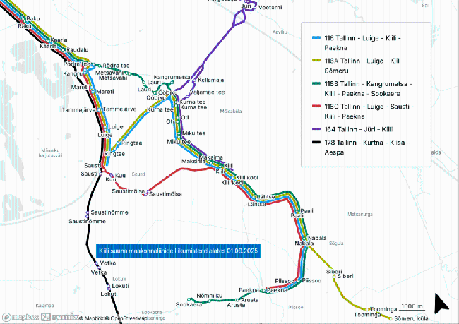 Alates septembrist on liini 164 alg-ja lõpp-peatus Kiilis (rohkem infot liini 164 kohta) ning Sausti piirkonnas teenindab edaspidi uus liin 116C.