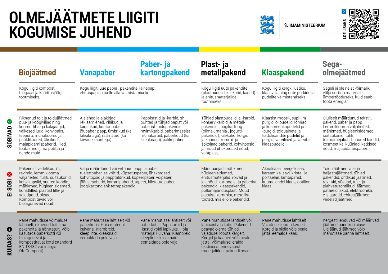 Jäätmeid tuleb liigiti koguda, et nendes sisalduv materjal ei lõpetaks prügimäel, vaid seda saaks kasutada uute toodete valmistamiseks. Selleks, et prügi sorteerimine oleks kõigi jaoks lihtsam ja selgem, on valminud riiklik liigiti kogumise juhend. Sellest peavad edaspidi lähtuma ka jäätmevedajad ja taaskasutusorganisatsioonid.