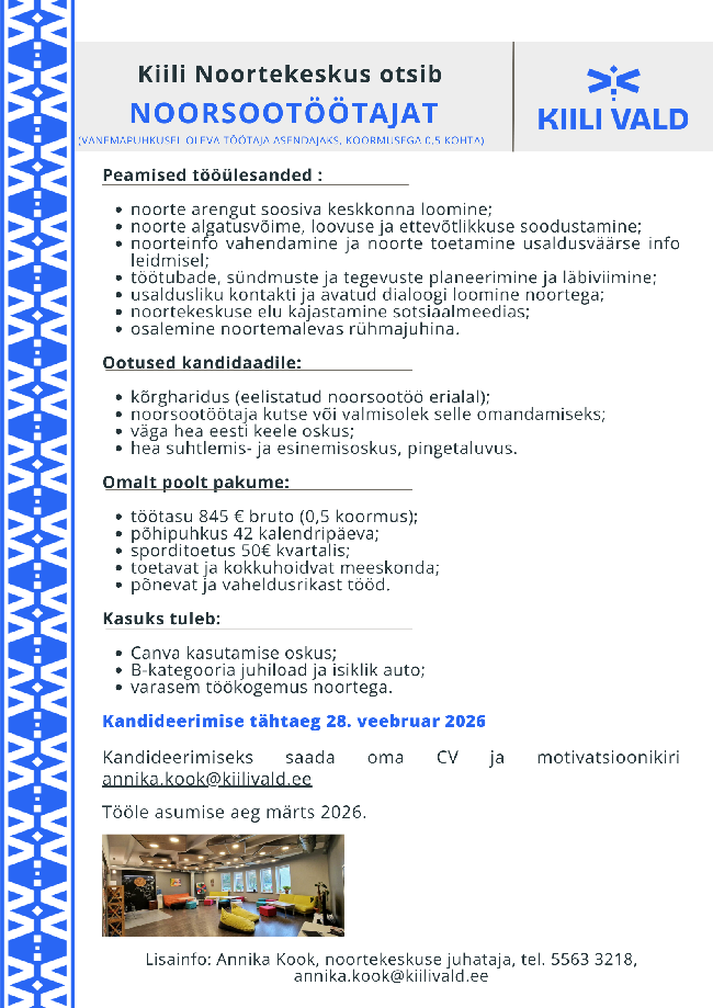 Kiili noortekeskus võtab tööle noorsootöötaja
