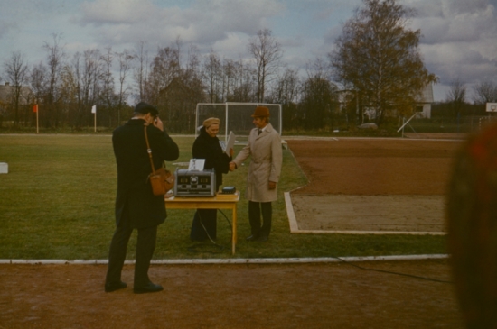 Läbi raskuste jõuti oktoobris 1973 staadioni avamiseni. Sinna kutsuti tolle aja Eesti kergejõustiklastest Veljo Kuusemäe (isiklik rekord kettaheites 64.54), Ants Savest (58.76), ja Enn Erikson (ketas 61.96). Eestlastele lisaks lätlane Stanislavs Skruls (62.00) ja leedukas Vytautas Jaras (62.64). Seega oli staadionil tegu esimese ja kohe rahvusvahelise võistlusega.