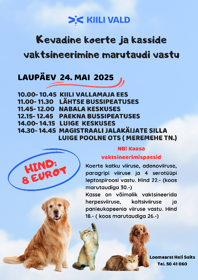 Koerte ja kasside vaktsineerimine marutaudi vastu toimub 24. mail