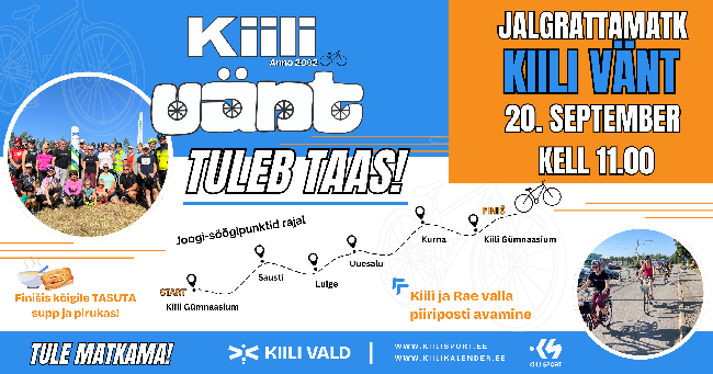 Jalgrattamatk "Kiili vänt" toimub taas - 20. septembril, laupäeval kell 11.00 . Kutsume kõiki vallaelanikke mõnusale kogupere jalgrattamatkale, kus sõidetakse läbi valla eri paigust ning...